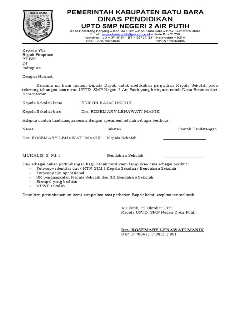 58172 keputusan kepala sd negeri 1 asemrudung kecamatan geyer kabupaten grobogan nomor : Stempel untuk sekolah biasanya memiliki format yang lebih seirama dan seragam. Contoh sk pengangkatan bendahara sekolah ditandatangani oleh kepala sekolah download file format docx microsoft word. Mungkin dari anda adalah seorang kepala sekolah bendahara sekolah atau kepala tata usaha yang pada saat ini menghadapi proses pergantian kepala sekolah atau bendahara dan ingin mengurus perubahan tanda tangan di rekening bank. Dalam pengelolaan dana bos tentunya sekolah membutuhkan seorang bendahara.